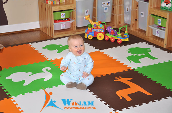 Thảm cao su và mút xốp có khớp nối trong việc lót sàn nhà để bảo vệ an toàn cho trẻ