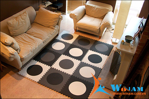 Trang trí phòng khách rất đẹp với Thảm cao su và mút xốp có khớp nối